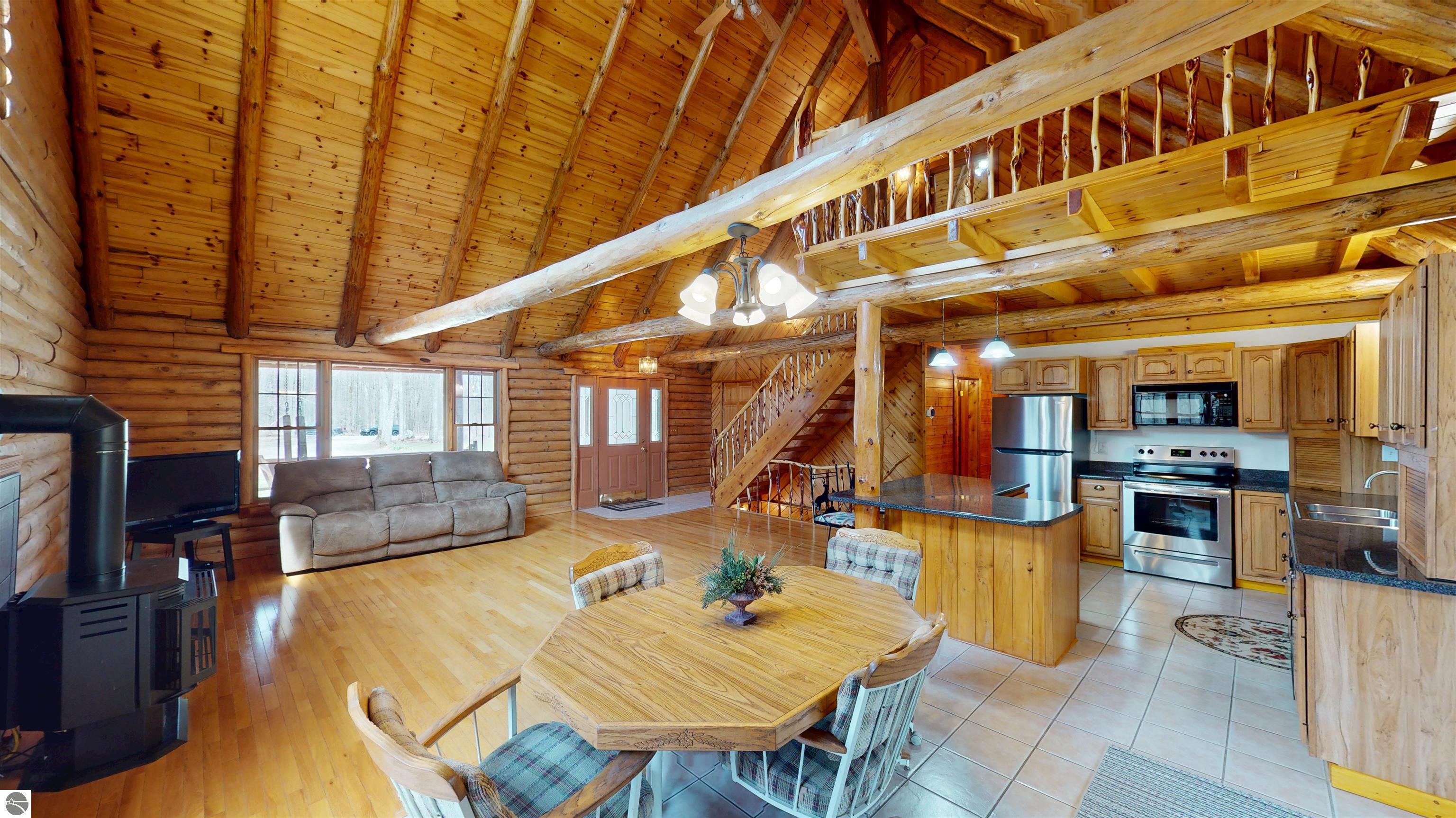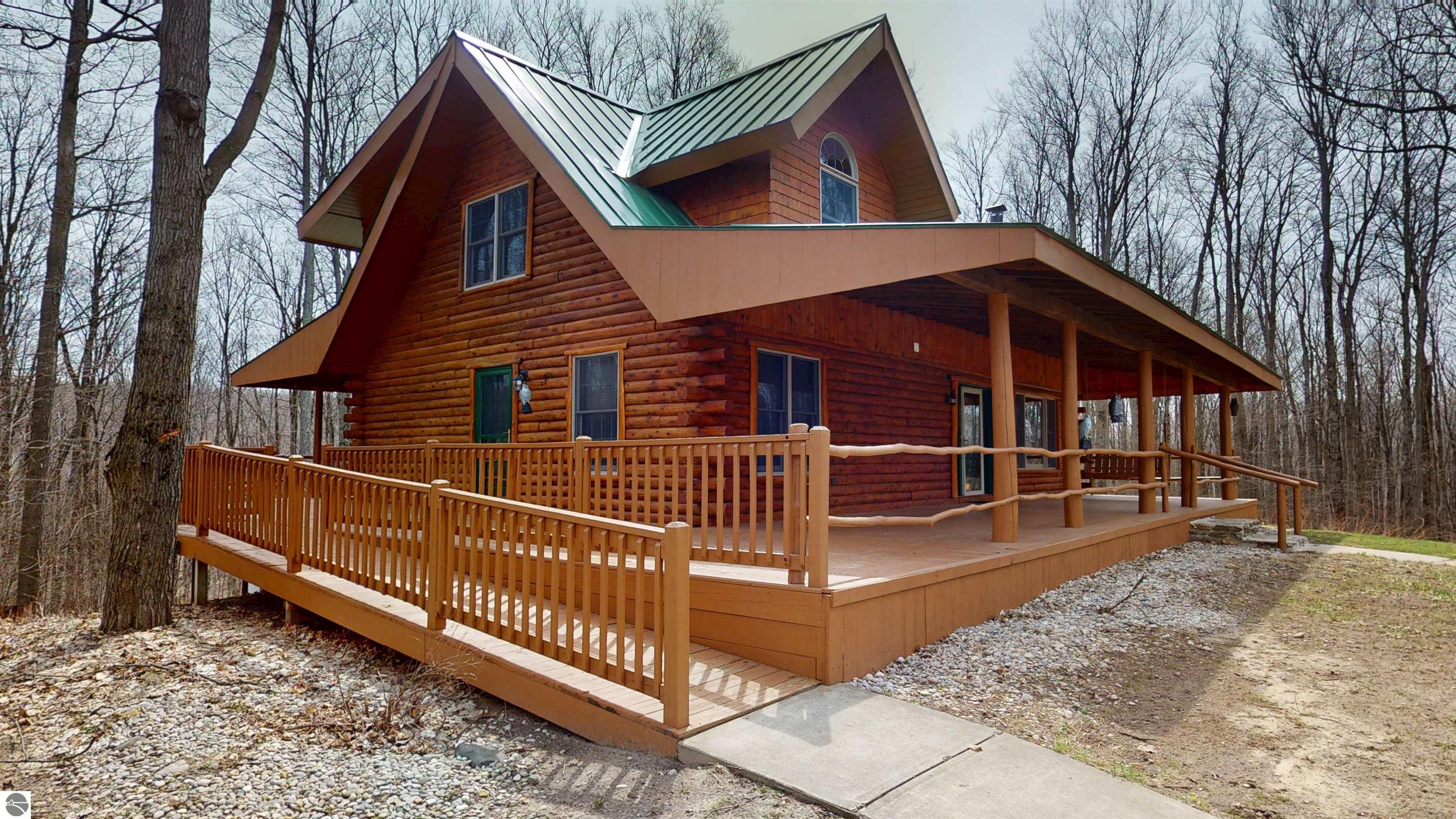 Gorgeous handcrafted white cedar log home on over 90 acres! Main floor features open concept and soaring ceilings with log beams that highlight the beauty of nature. Custom woodwork throughout this 3 level home, including unique diamond willow staircase and loft rails. Private primary suite, with additional 3 bedrooms and 2 full bathrooms provide plenty of space to create a family retreat. Spend your days exploring nearby Bellaire, golfing at Schuss and Shanty Resort or boating the Chain of Lakes. Imagine morning coffee on the covered wrap around porch or relaxing evenings in front of the natural stone fireplace. This exceptional home offers nature inspired luxury in the heart of Northern Michigan. Time to live your dream!