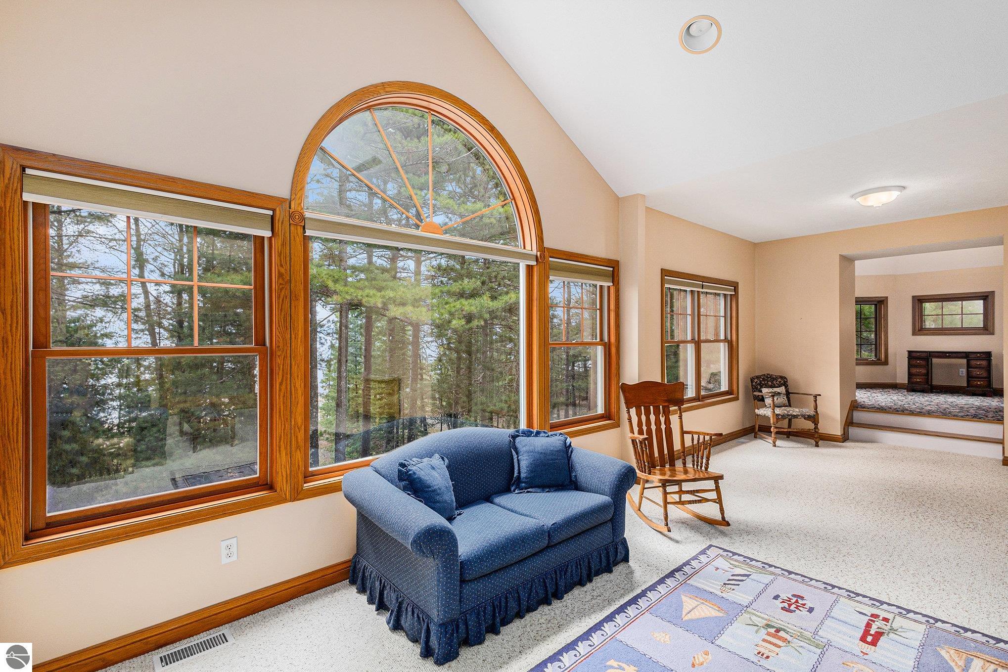 Discover your own piece of paradise with this stunning East Bay waterfront property, where every day feels like a vacation. Enjoy direct access to one of the world’s most beautiful freshwater lakes and immerse yourself in the ultimate lakefront lifestyle. Step outside to your 200' of private sandy beach on East Bay and savor the soothing sounds of waves and breathtaking sunsets. Whether you seek relaxation or adventure, this home offers it all: kayak along the shoreline in the morning, spend afternoons boating or paddle boarding from your dock, and gather around a lakeside fire pit in the evening. Experience true Northern living in this stunning Custom Woodcraft home nestled on 3 acres located just minutes from Elk Rapids and Charlevoix. Designed for maximum enjoyment, this spacious retreat features expansive windows and spacious decking. Home features over 4500 sp. ft. of living space, 5 bedrooms and 5.5 bathrooms, thoughtfully designed for comfort and entertaining. The open floor plan showcases quality craftsmanship with natural wood finishes, expansive windows framing water views, and generous living spaces ideal for gatherings or peaceful relaxation. In addition to the main residence, the property includes a charming original Bellaire log cabin, perfect for guests or a cozy getaway, and a large pole barn providing ample space for storage, hobbies, or equipment. Experience the magic of Lake Michigan-embrace serenity, adventure, and the timeless appeal of living by the water’s edge. Your ultimate waterfront lifestyle awaits. Be sure to open and view the virtual tours. See Special Features Sheet, floor plans and survey in documents.