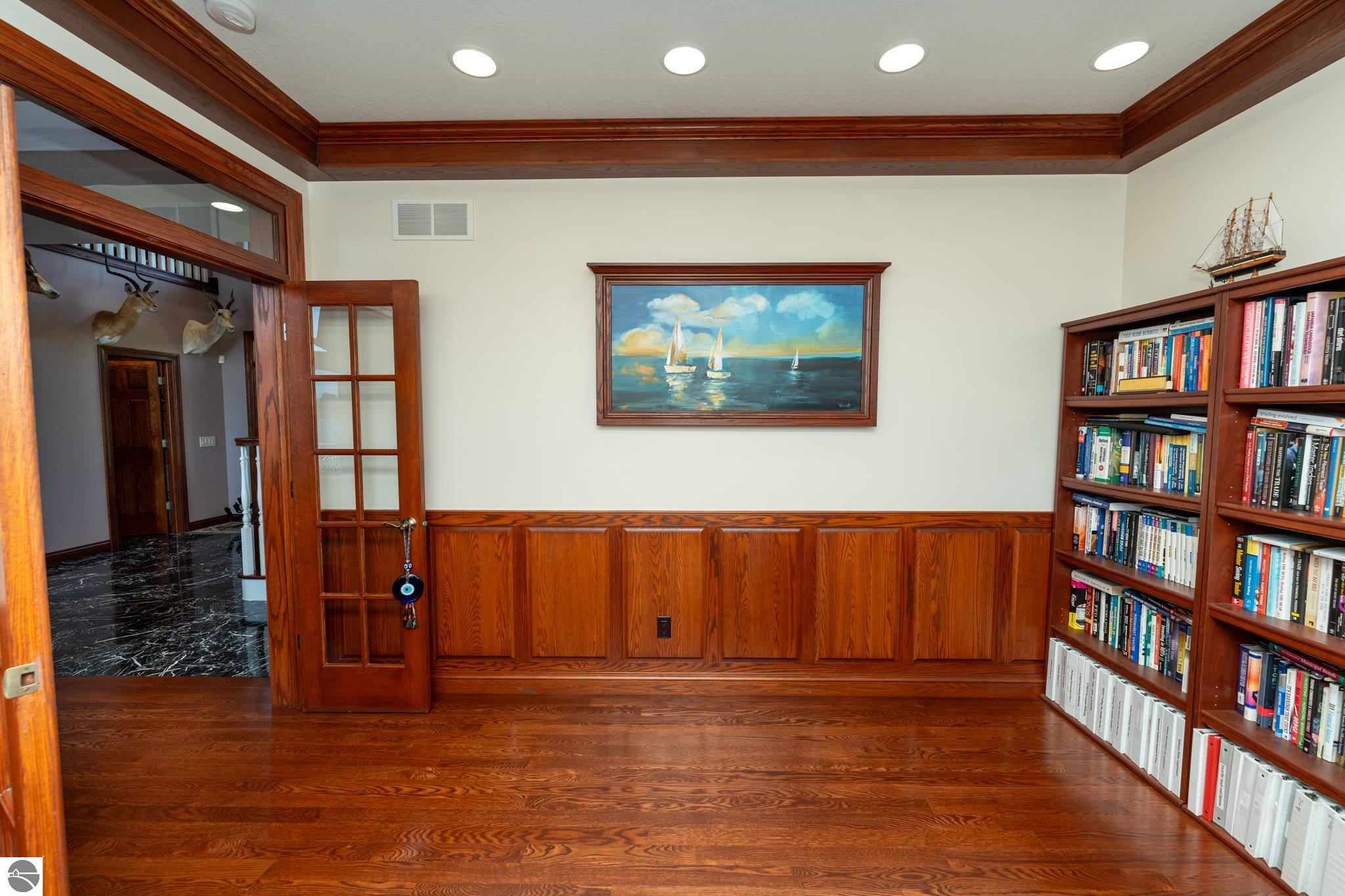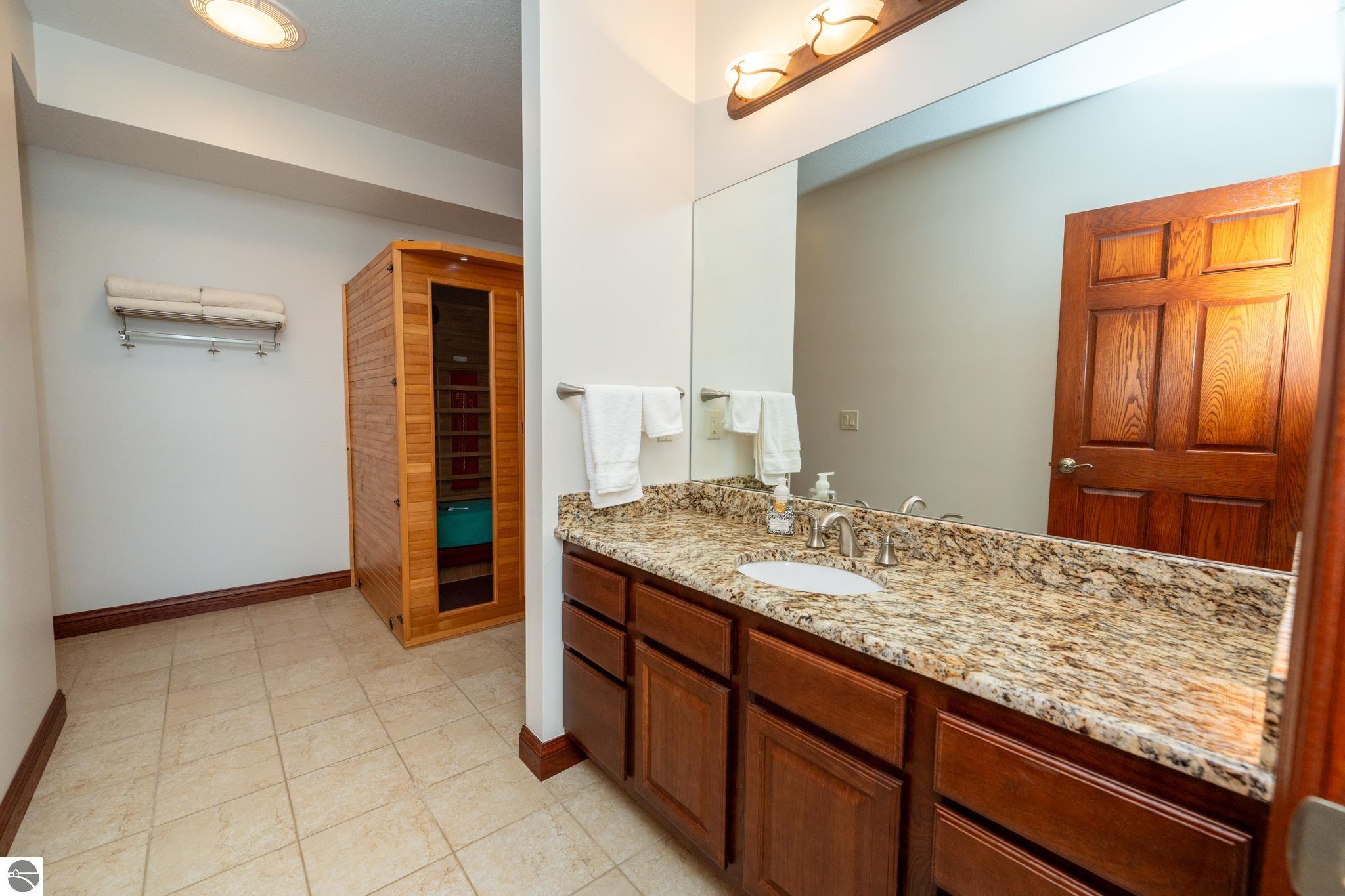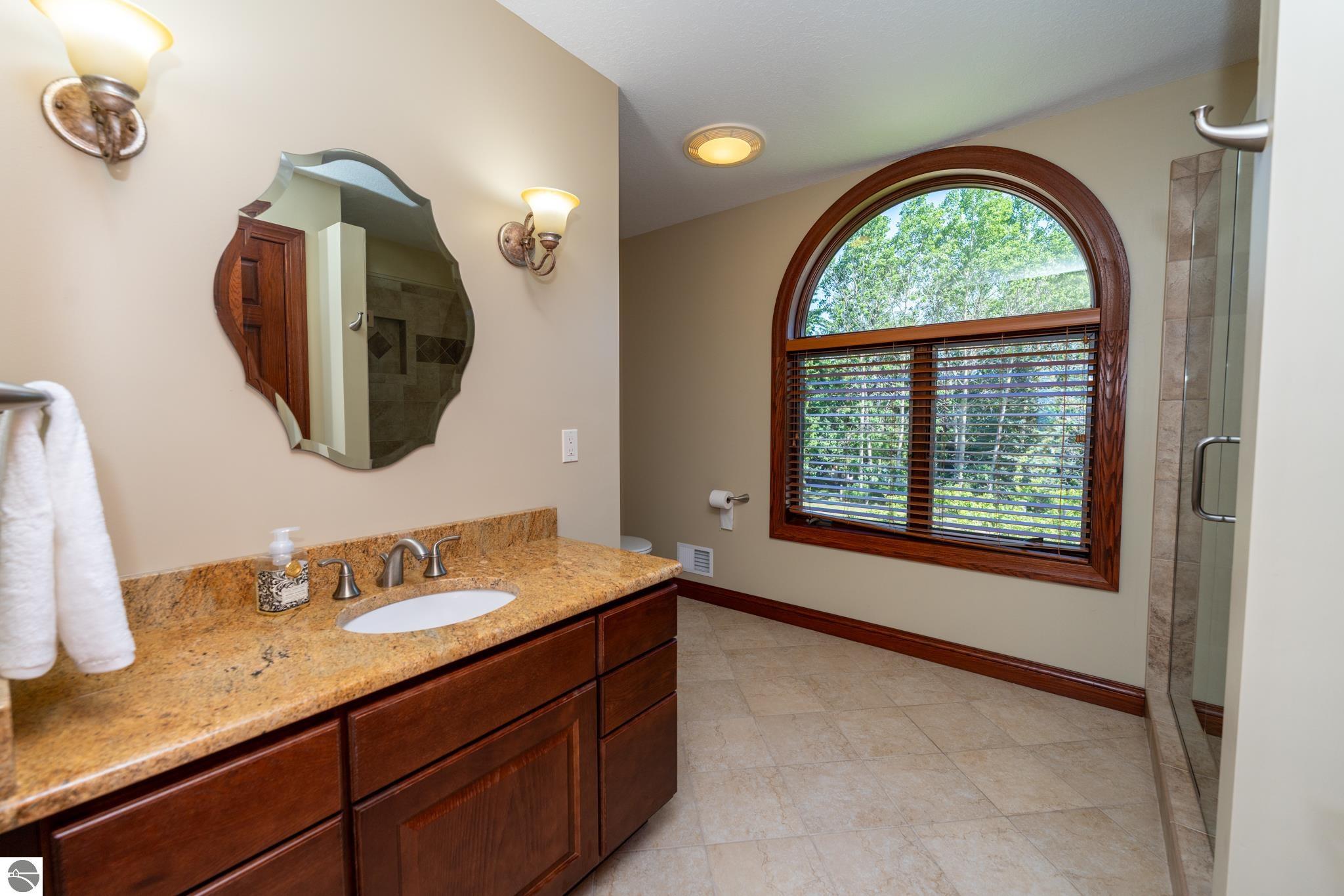 Welcome to luxury lakefront living at its finest! This beautiful waterfront home is located on Lake Isabella, a private 800-acre all-sports lake. This 4-bedroom, 4.5-bath custom residence with a 3-car garage sits on a professionally landscaped 1-acre lot with 210 feet of shoreline. Built to the highest standards, the home features a brick and real stone façade, granite countertops throughout, and a stylish blend of ceramic tile, marble, hardwood, and carpet. The grand two-story foyer opens to a spacious great room with cathedral ceilings, a natural stone fireplace, and a dramatic wall of windows showcasing breathtaking lake views. The open-concept layout connects the great room, breakfast nook, and kitchen, which features a lake-facing center island. A formal dining room and wood-paneled study—both with water views—offer additional elegant living spaces. The first-floor primary suite includes cathedral ceilings and a walk-in closet, while the second floor boasts a guest suite with a private lake-view balcony. An exposed catwalk connects the suite to a large loft, two additional bedrooms, a full bath, and a second study. The finished walkout lower level is ideal for entertaining, offering a wet bar with granite counters, pool table, home theater with Bose sound system, and an infrared sauna. A sliding door leads to a patio, stone-lined seawall, and sandy beach. Energy-efficient with 2x6 exterior walls, Anderson windows, geothermal heating and cooling, and a standby whole-house generator. Enjoy over 500 sq ft of composite decking across the lakeside of the home. As a member of the Isabella Property Owners Association, you’ll have access to The Pines Golf Course with clubhouse and restaurant, private airstrip, tennis courts, 22+ parks, and a campground with adjacent storage facilities. This home blends timeless elegance with modern comfort.