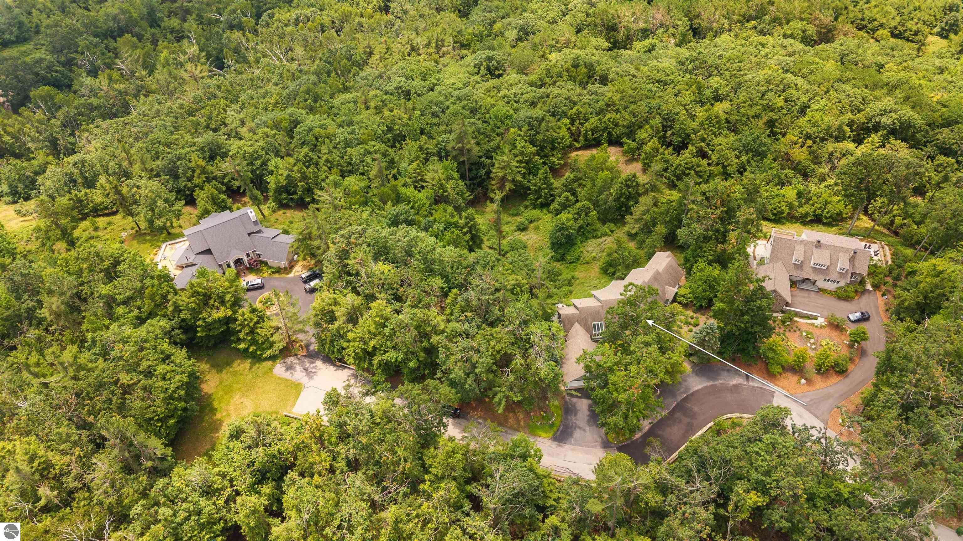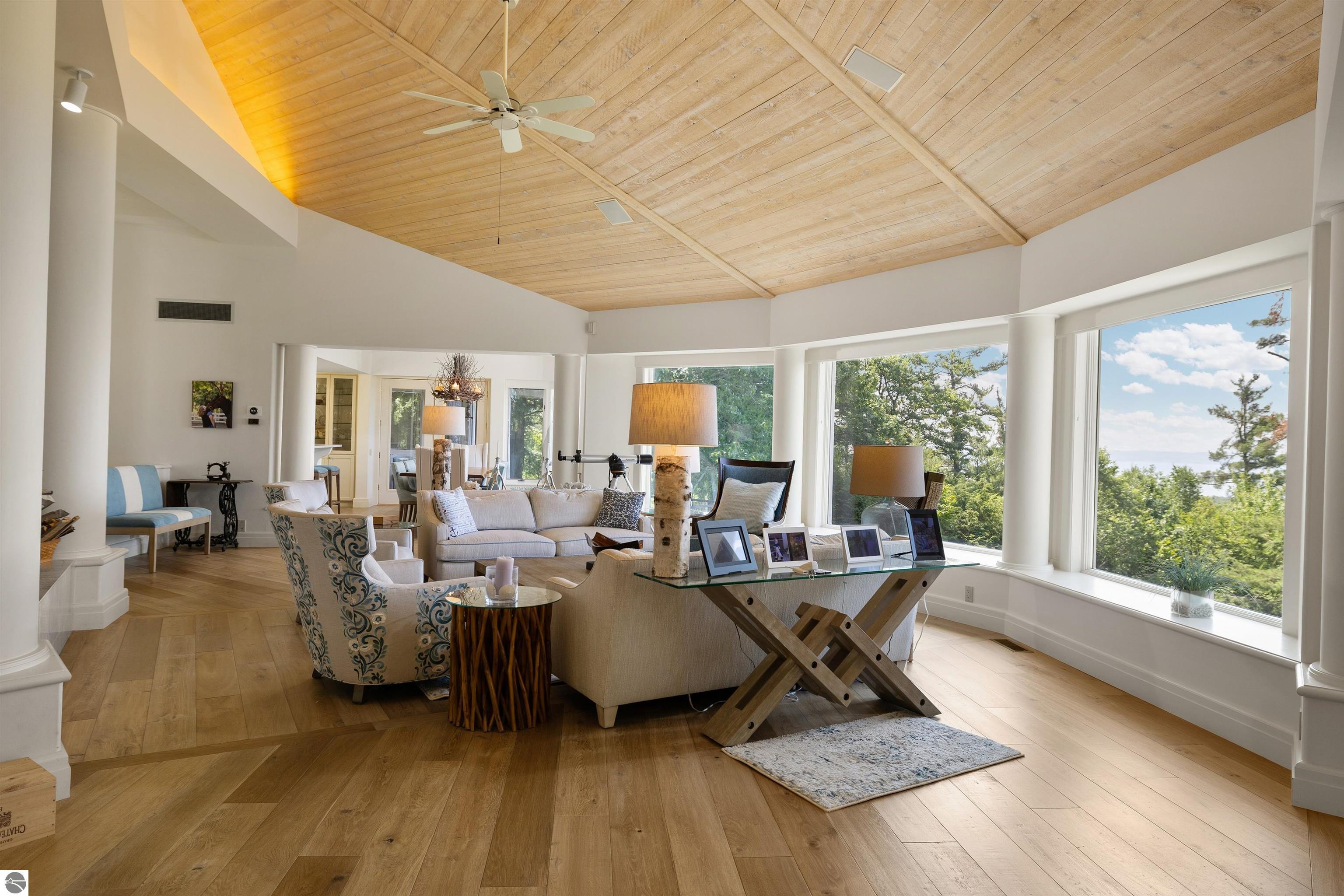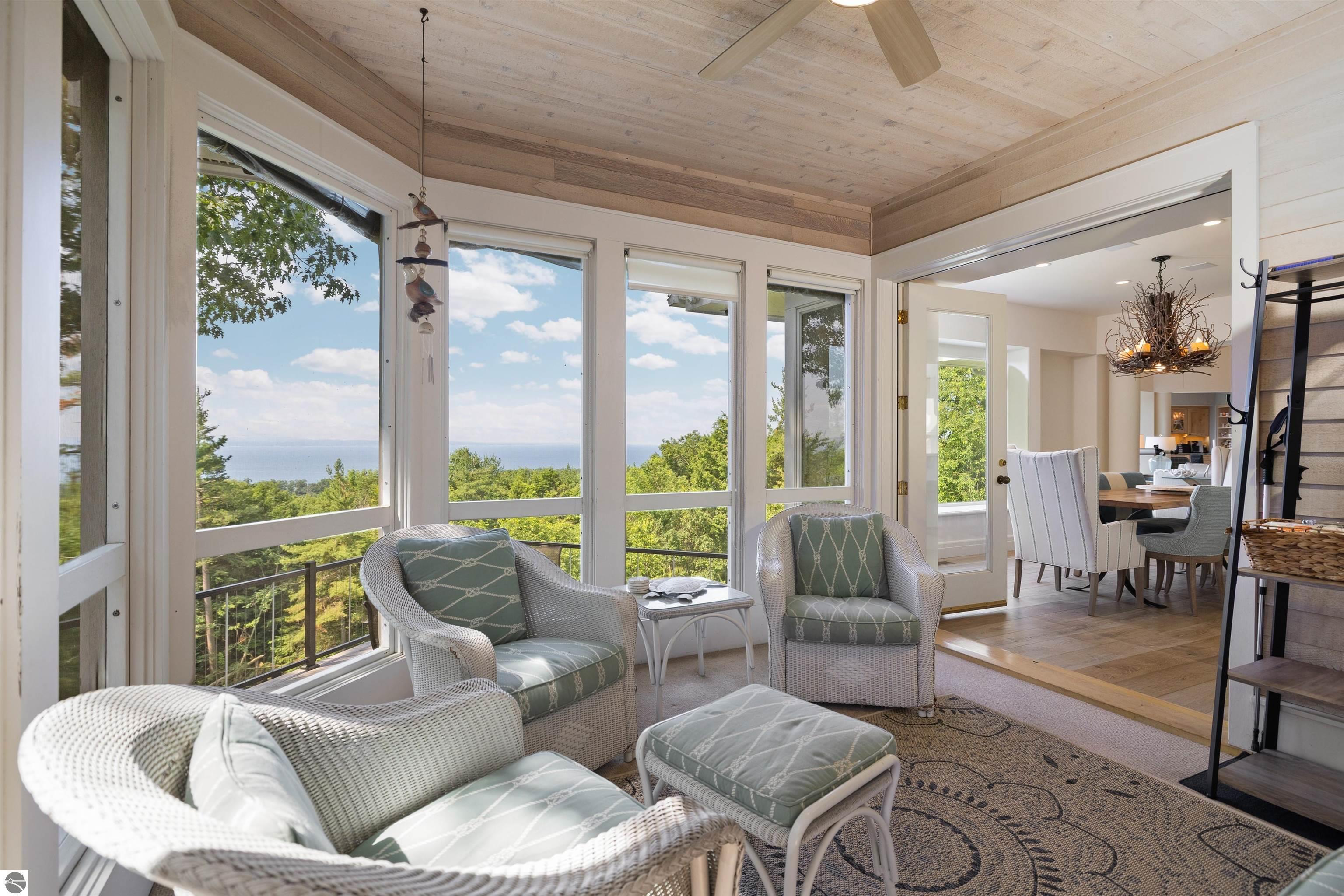 Panoramic Lake Michigan views from every room of this custom-built home. Located within private and prestigious Windward, five minutes from downtown Harbor Springs. This magnificently maintained home was designed by David Trautman, built by Birchwood Construction and was featured on the cover of Traverse Magazine. Home features an open living area, first floor master suite with two walk-in closets and tiled shower, full walk-out lower level with wraparound deck, three-season screened porch, and gorgeous landscaping. Owner has professionally maintained this home and grounds and recently upgraded with new flooring, windows, composite decking, 2023 HVAC system, nest thermostats, LED lighting, Sonos Bluetooth speakers, the list goes on and on. Kitchen features double Wolf ovens and cooktop, Sub-Zero refrigerator and other high-end appliances and finishes. This beautiful home sits on 2 lots totaling over 3 acres, the vacant lot has its own parcel ID and is buildable. Association amenities include tennis, pool, clubhouse, nature trails, pond and more. Incredible views from this one-of-a-kind Harbor Springs home!